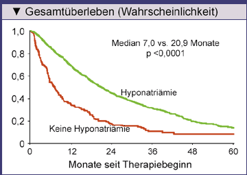 Das Gesamtüberleben der Patienten mit Hyponatriämie war signifikant kürzer als bei