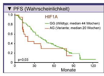 Die objektive Ansprechrate stand in Verbindung mit fünf Polymorphismen in den Genen für HIF1A, NR1/2 (reguliert CYP3A4)